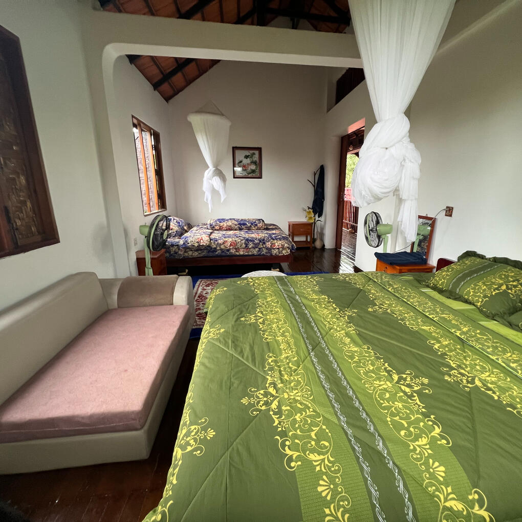 Just across the Mekong, enjoy your own private villa in a quiet garden setting with outdoor jacuzzi. Perfect for birthdays, reunions, group getaways, or simply a countryside escape with friends and family. You’ll have the entire space to yourself — Peaceful, private, and designed for gathering.